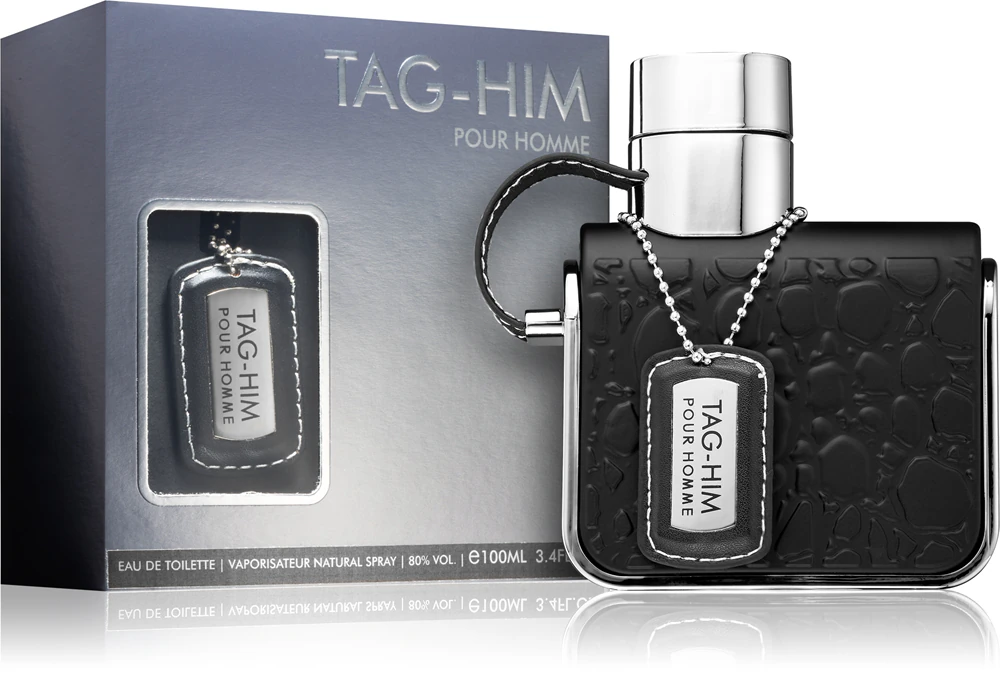 Tag-Him de Armaf es una fragancia de la familia olfativa Amaderada Especiada para Hombres. Las Notas de Salida son toronja (pomelo), limón (lima ácida), bergamota y pimienta rosa; las Notas de Corazón son jengibre, menta, lavanda y nuez moscada; las Notas de Fondo son vetiver, pachulí, sándalo y cedro.